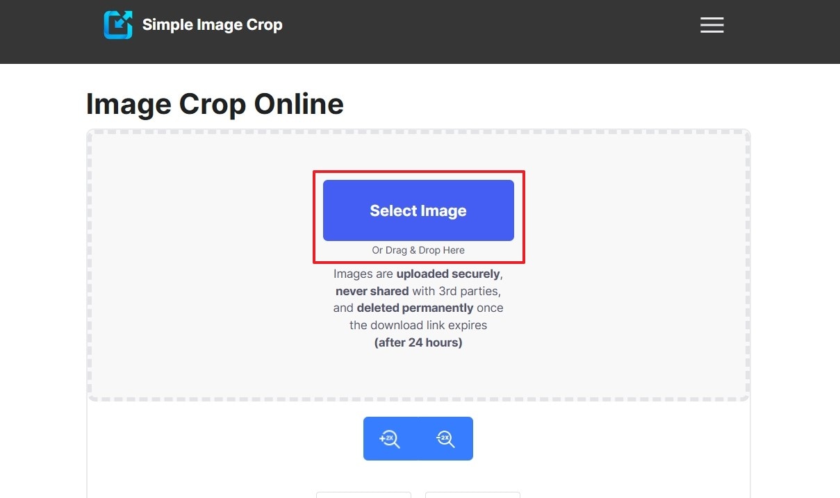 Step 1. First, head to the online cropping tool and click the “Select Image” button to upload an image.