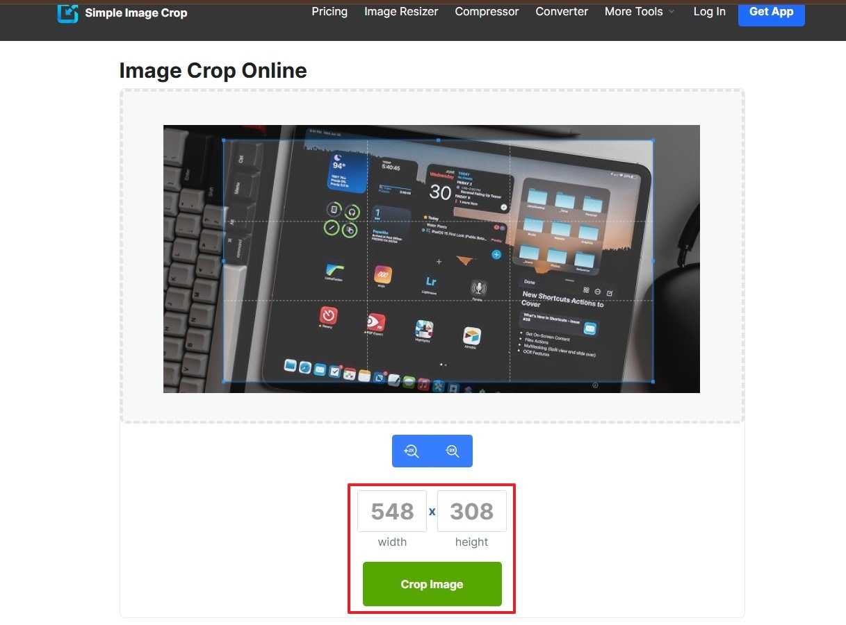 Step 2. When uploaded, manually readjust the image corners or change the “Height” and “Width” options. When satisfied, press the “Crop Image” button.