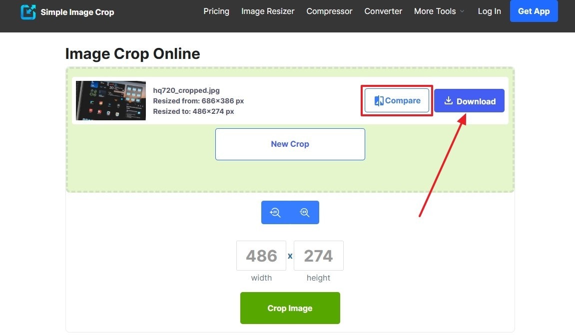 Step 3. After the cropping, press “Compare” to review the size difference, and hit the “Download” button to save the image.