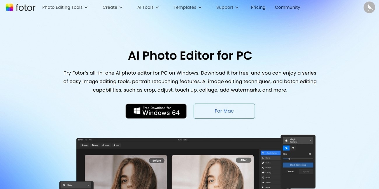 4.Fotor offers a photo restoration option where its AI carefully analyzes the picture and brings out its pixels and colors.