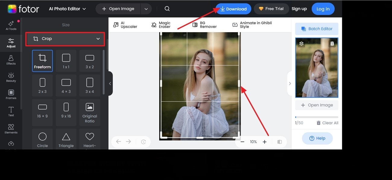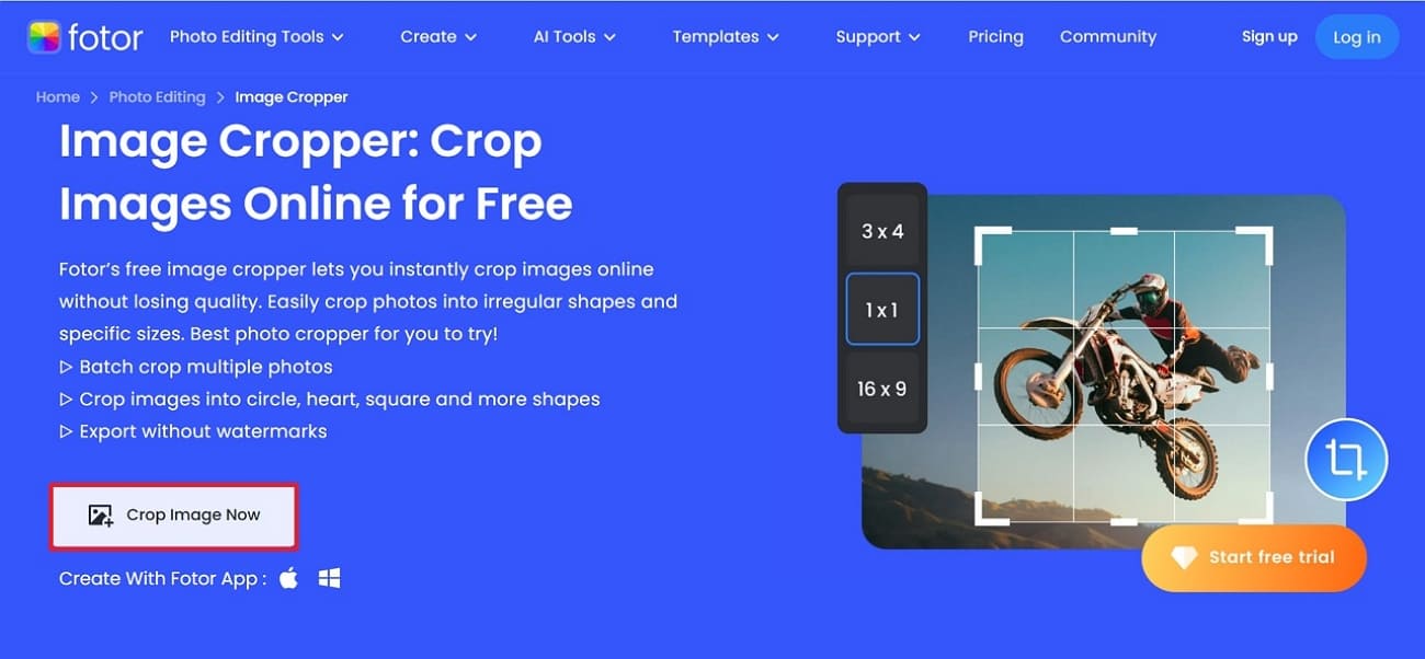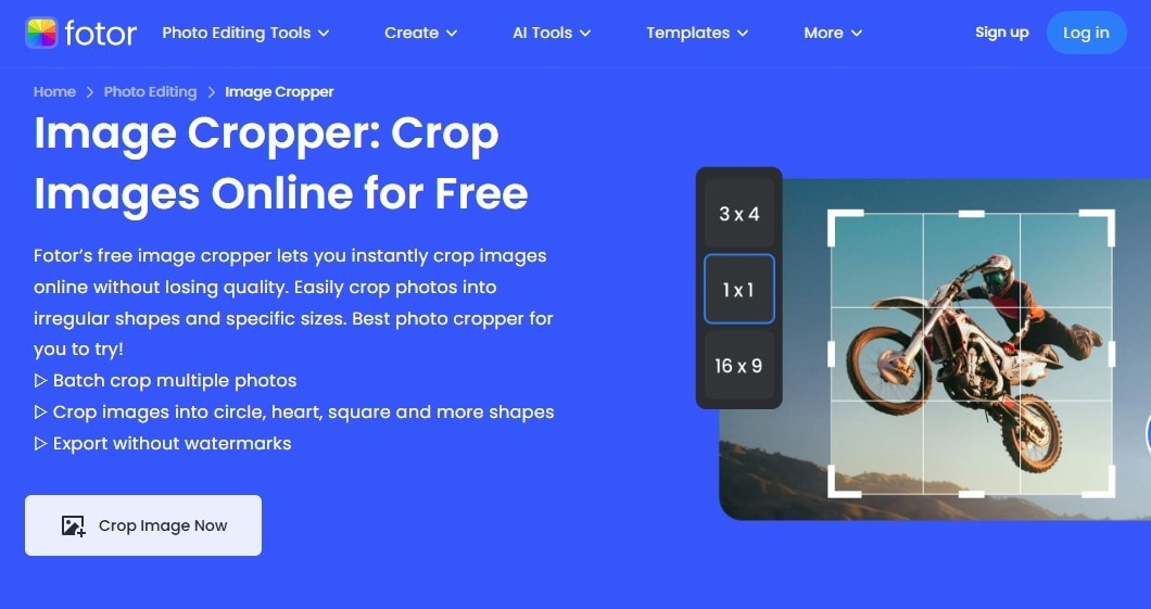 In conclusion, it is necessary to crop the image while doing editing, and since there your image, and fin&pcropcou can an style="font-size: 22px;">Key Fea0661 32.685"x="0clusiicor">l. To eliminate the need for unnecessary downloads, online image croppers are a quick and convenient solution. The following section will cover the web-based photo crop editors for seamless editing: If you want to instantly crop the image in seconds, you can use Fotor to crop images without losing quality. From a rectangle or square, to a heart shape or more, you can use any template you want to cut the image. Apart from this, it lets you manually drag the borders to crop the image according to your desired needs. 1. Users can crop more than one picture using its batch photo cropper. 2. The tool enables you to save watermark-free pictures to upload to social media. 3. You can also change the desired resolution using its aspect ratio. 4. To post on social media, it offers ready-made image sizes such as YouTube thumbnails or Instagram etc. Let’s learn the steps to use this too for cropping a photo: Step 1. Open the tool on a browser and press the “Crop Images Now” button to upload a photo. Step 2. From the “Crop” section, select the desired shape or drag the border on the screen to get the desired size before clicking the “Download” button. 1. Users can crop more than one picture using its batch photo cropper. 2. The tool enables you to save watermark-free pictures to upload to social media. 3. You can also change the desired resolution using its aspect ratio. 4. To post on social media, it offers ready-made image sizes such as YouTube thumbnails or Instagram etc.32C16.4669 13.7211 16.35s 1.Sis.937 0 24 24"4C22.0