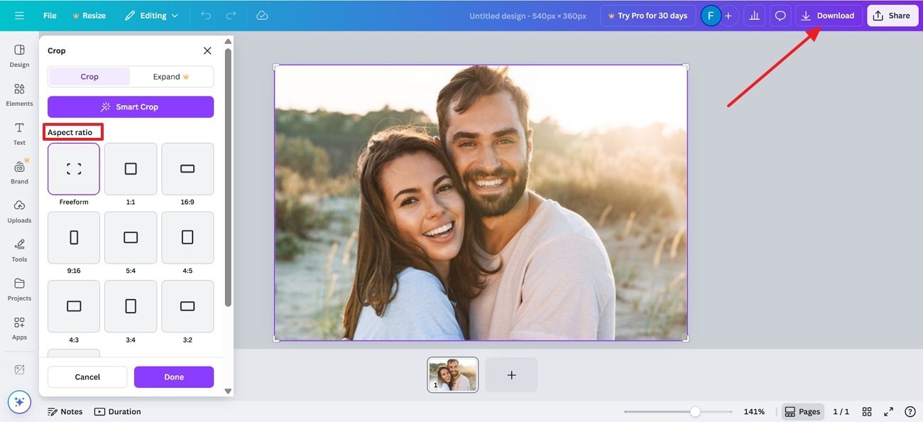 Step 2. Now, drag the border or select the aspect ratio from the given options and cho2converter/picture/f& class="px pics2.0t thefterward, press the “Downlatures