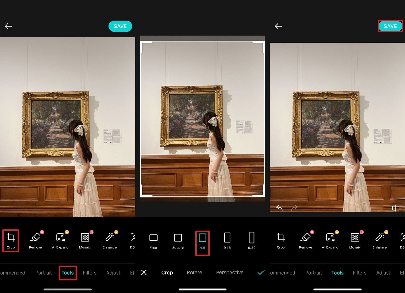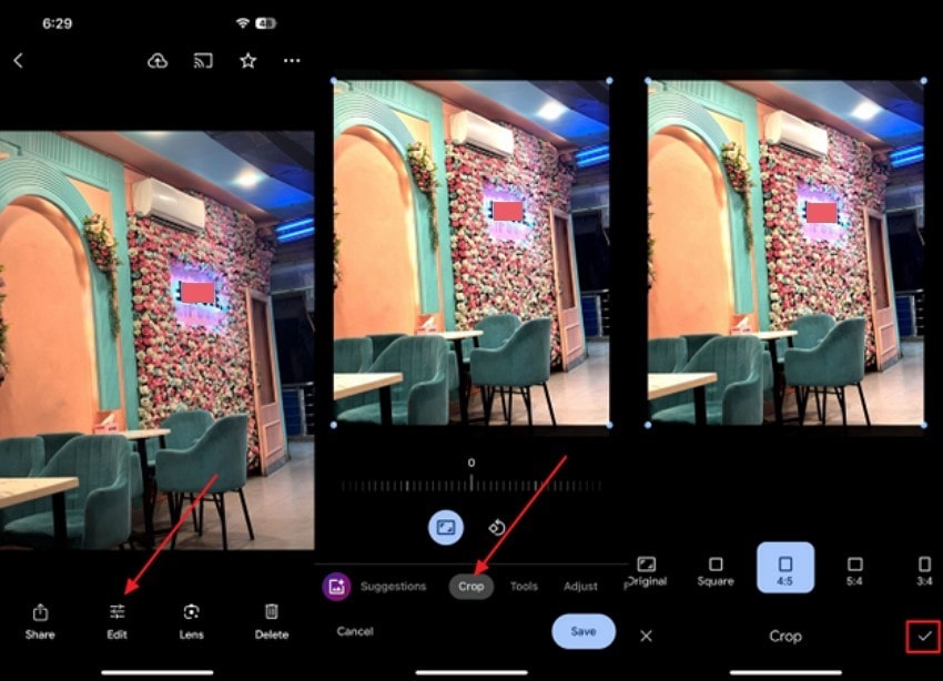 Step 2. Now, drag the border or select the aspect ratio from the given options and cho2ep 3. Sele>