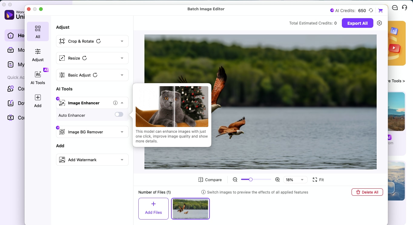 Wondershare UniConverter makes this process seamless. The tool features a powerful AI engine that helps resize multiple images in one go. More importantly, it lets you add dimensions from your side while maintaining the image quality. The powerful AI engine of UniConverter lets you recognize optimal dimensions for compression, and it also supports a wide range of formats and lets you preview results before applying changes.