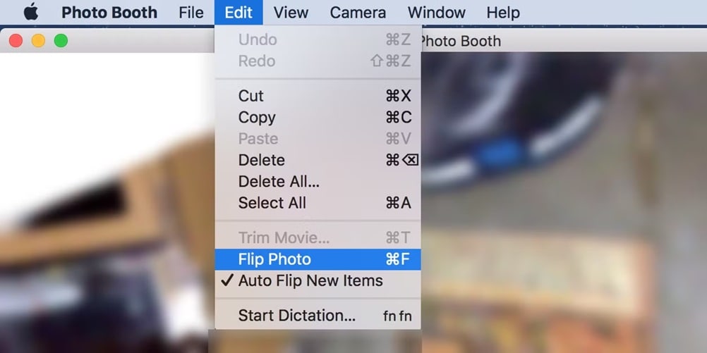 - Open Photo Booth from your Applications folder. Import your image by dragging it into the window. Click Edit. Select "Flip Photo”.