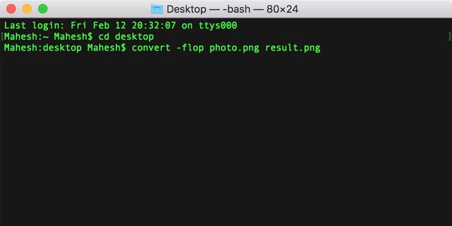 Steps to flip image on Mac using Terminal: