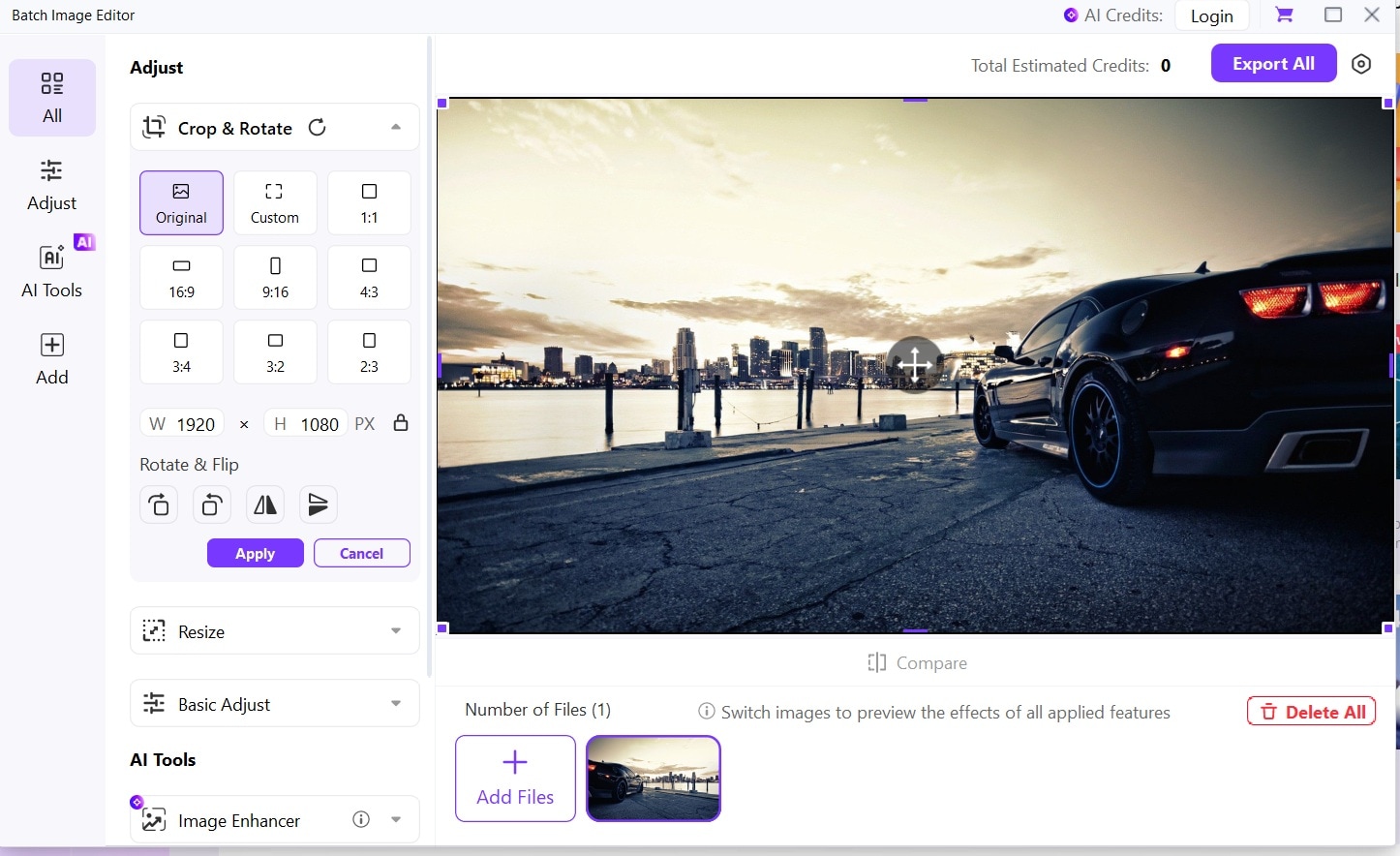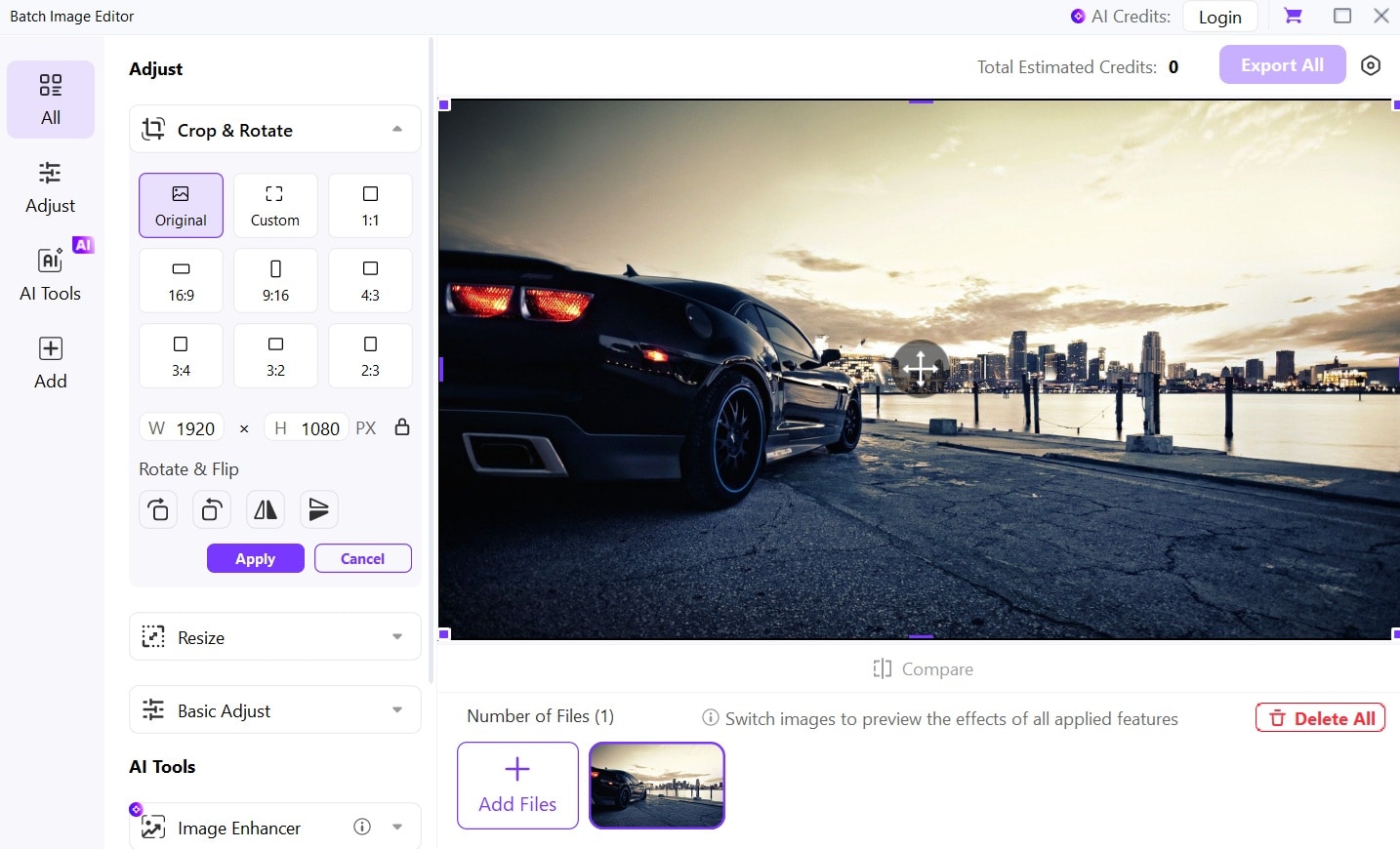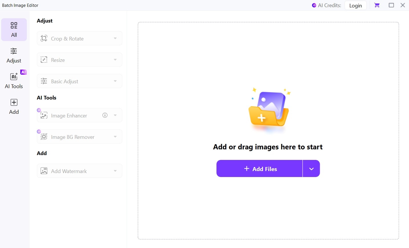 Add multiple images by clicking "Add Files" or drag and drop. Select all images you want to modify.