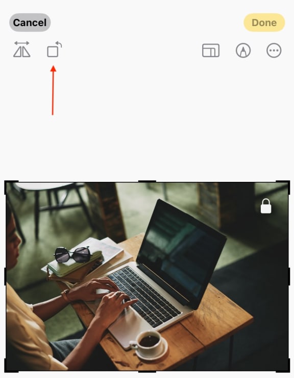 Tap the rotate icon (a square with a curved arrow) to rotate the photo in 90-degree increments. If satisfied, click "Done" to save the edited image.