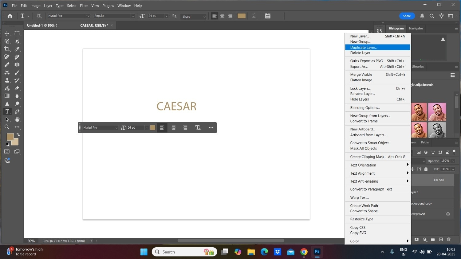 First, make sure your spelling, font size, and style are accurate. Now duplicate your text layers (right-click and select "Duplicate Layer") to preserve the original.